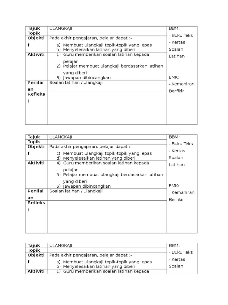 Murid diminta untuk menjawab soalan dalam masa 1 jam 15 minit. Koleksi RPH Rancangan Pengajaran Harian. Guru mengedarkan kertas soalan pakej ulangkaji dan memberikan arahan.